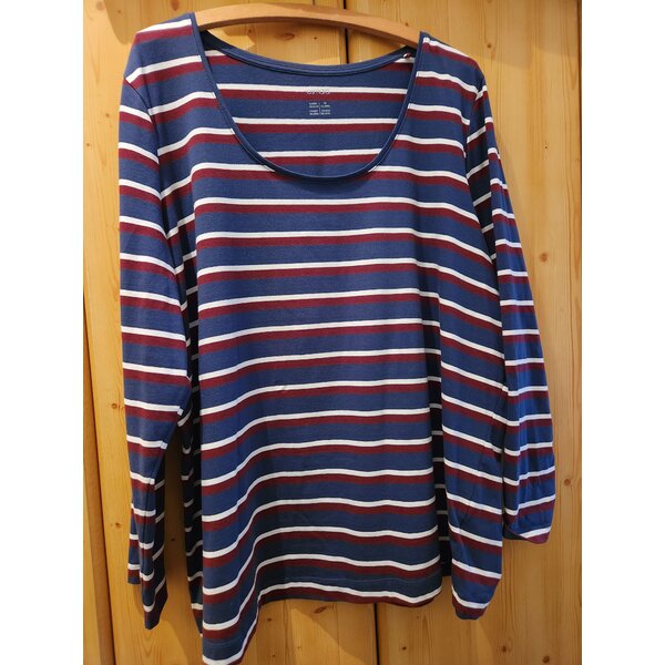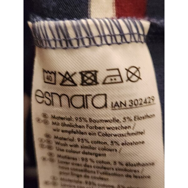 Langarmshirt in, wie ich finde, guter Qualität. Breite Achsel zu Achsel: ca. 69cm, Länge ca. 75cm. Material 95% Baumwolle, 5% Elasthan. Bei 40 Grad waschbar. Die Ärmel fallen recht eng aus - nicht am Bündchen, sondern eher an den Oberarmen.