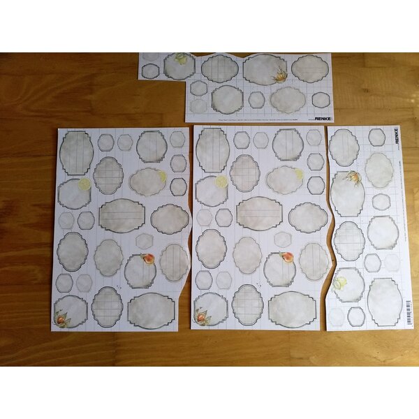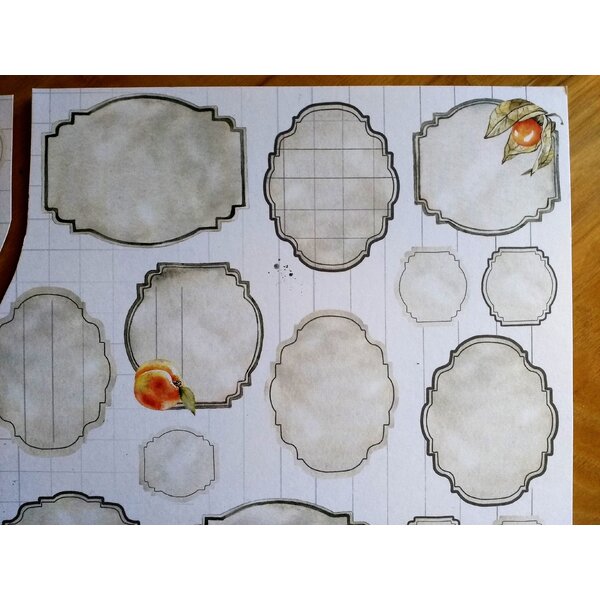 (Es waren ursprünglich zwei 30x30 cm große Blätter, die ich auf Din A4 zur Aufbewahrung zugeschnitten habe. Etiketten sind nicht durchgeschnitten worden)