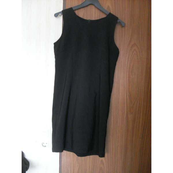 Schlichtes Etuikleid in schwarz. Das Kleid hat einen langen Reissverschluss im Rücken.