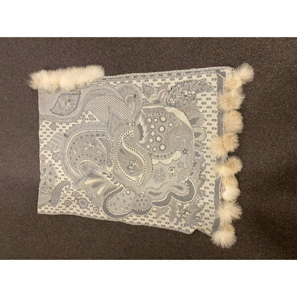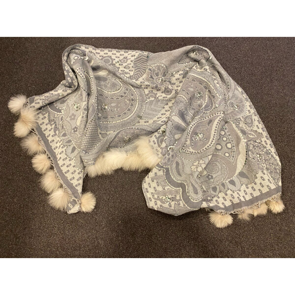 Warmes Tuch , vermutlich aus Viscose mit Baumwolle . Kunstfellbesatz am Kragen und , aufwändig bestickt