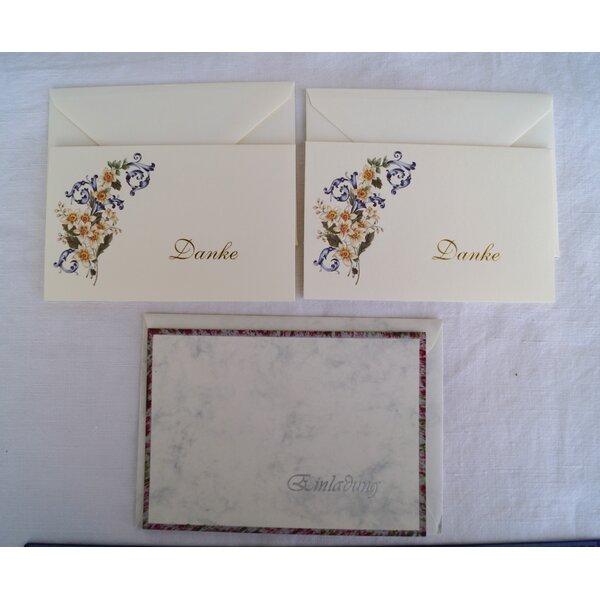 drei Faltkarten mit passenden Umschlägen, Danke-Karten gefaltet ca. 135x85 mm, Einladungs-Karte ca. A6