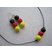 Das Set besteht aus einer halsnahen Kette, Ohrringen und einem Armreif. Verwendet habe ich schwarzes Baumwollband, kleine Glasrocailles, Kunststoffperlen und nickelfreie Metallelemente.