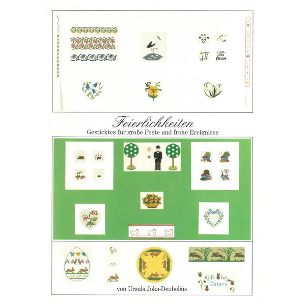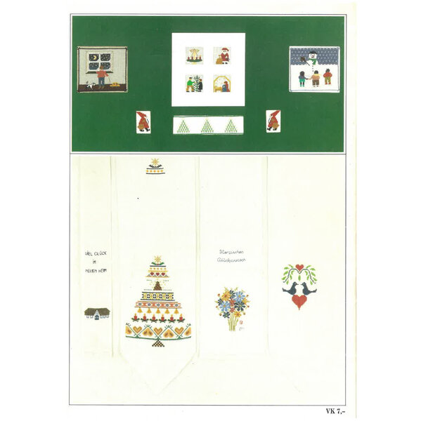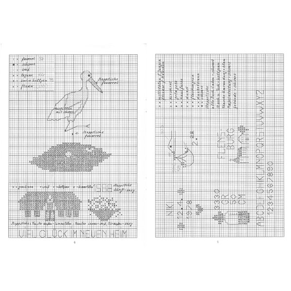 Hier sind viele Stickmuster in schwarz-weiss sowie deren Farbcodes abgebildet. Die farbigen Abbildungen der Arbeiten sind auf dem Vorder- und Rückcover zu sehen.