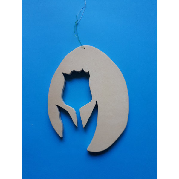 Neu ausgesägt Fensterbild aus Pappelsperrholz. Da das Sperrholz länger gelegen hat, ist die eine Seite etwas dunkler, vor dem Fenster ist es aber nicht zu sehen. Länge ca 12 cm
