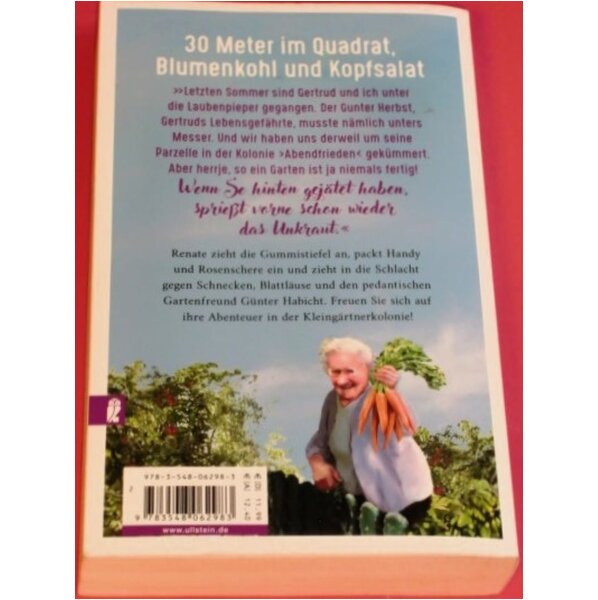Letzten Sommer sind Gertrud und ich unter die Laubenpieper gegangen. Der Gunter Herbst, Gertruds Lebensgefährte, musste nämlich unters Messer. Und da ihm seine Kohlrabi und Tomaten so sehr am Herzen liegen, haben wir uns derweil um seine Parzelle in der Kolonie Abendfrieden gekümmert. Aber herrje, so ein Garten ist ja niemals fertig! Wenn Se hinten gejätet haben, sprießt vorne schon wieder das Unkraut. Trotzdem haben wir bei der Wahl zum schönsten Garten der Kolonie den zweiten Platz gemacht! Für den ersten Platz hat es nicht gereicht, wissen Se, die Schlehdorn von Parzelle 6 hatte uns eine hübsche Topfpflanze ins Gewächshaus gestellt, und dann hätte der Günter Habicht beinahe wegen Hanfanbau die Polizei gerufen, denken Se sich das nur! Aber ein zweiter Platz ist ja auch schön.