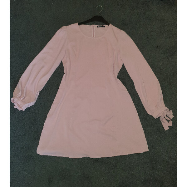 Super gepflegtes wunderschön weiches und leichtes Kleid (der Stoff fühlt sich trotz Polyester sehr angenehm an). Für den Winter mit Strickjacke und Leggings ein Hingucker. Brustweite ca 50cm, Länge 88cm. Keine Flecken, Löcher oder Peeling. An den Ärmelenden Bindeschleifchen und hinten Reißverschluss.