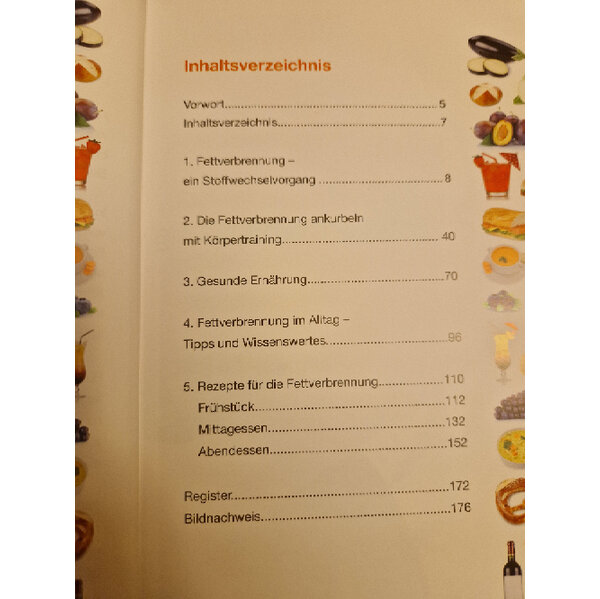 Wer ein paar Pfunde loswerden will, muss seine Fettverbrennung ankurbeln. Dafür sind eine Umstellung der Ernährung und regelmäßige Bewegung die wichtigsten Voraussetzungen. Beides lässt sich gut in den Alltag integrieren. In diesem Buch erläutern wir Ihnen, wie Fettaufbau und Fettverbrennung in unserem Körper funktionieren. Es folgen praktische Hinweise, wie Sie durch Körpertraining Ihre Fettverbrennung ankurbeln können, sowie Tipps für eine gesunde Ernährung. Für die drei Mahlzeiten Frühstück, Mittag- und Abendessen haben wir leckere Rezepte zusammengestellt, bei denen Sie auf den kulinarischen Genuss nicht verzichten müssen. Dieser praktische Ratgeber hilft bei der Fettverbrennung und einer gesunden Lebensweise.