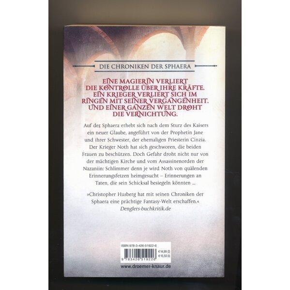 Auf der Sphaera erhebt sich ein neuer Glaube, angeführt von der Prophetin Jane und ihrer Schwester, der ehemaligen Priesterin Cinzia. Knoth hat sich geschworen, die beiden Frauen zu beschützen, damit die Opfer, die sie alle gebracht haben, nicht umsonst gewesen sind. Doch Gefahr droht nicht nur von der mächtigen Kirche und vom Assassinenorden der Nazaniin: Noth wird schlimmer denn je von quälenden Erinnerungsfetzen heimgesucht. Zur gleichen Zeit findet jenseits des Bluttores in Roden eine junge Tiellanerin einen neuen Beschützer – der ihre einzigartige Begabung für seine eigenen finsteren Zwecke einzusetzen gedenkt.