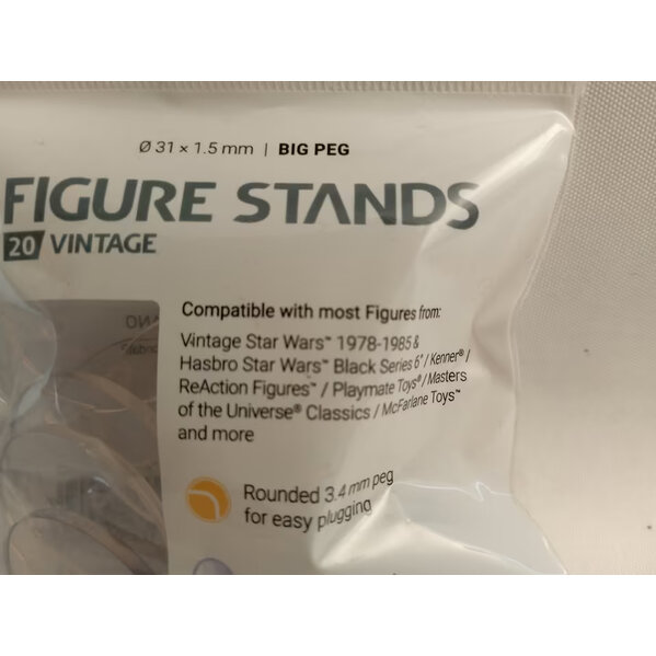 Diese Ständer eignet sich ideal dafür, um Figuren aus der He-Man/Masters of the Universe Classics Linie, Star Wars Black Series, Star Wars Vintage Figuren von 1978-1985, andere Kenner Figuren, ReAction Figuren, Figuren von Playmate Toys sowie McFarlane Toys und vielen weiteren einen sicheren Stand für die Vitrine oder für Actionreiche Posen für Fotos zu verschaffen.