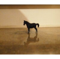 Minipferd von Bullyland, Gummi, schwarz mit Blesse, bis zu den Ohrspitzen 3,4 cm hoch. ... mehr