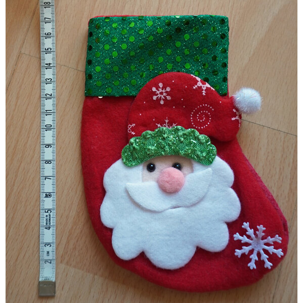 Kleine Filzsocke mit Weihnachtsmanngesicht, unbenutzt.