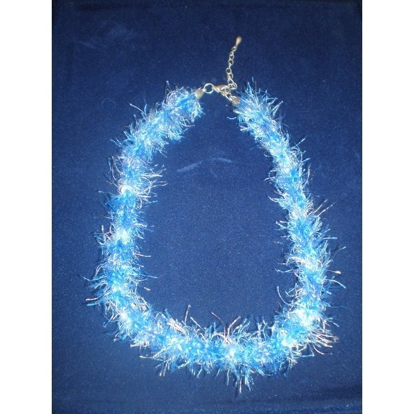 Helle zarte Blautöne wie ein Sommerhimmel strahlen in dieser Flauschkette um die Wette. Auch Sie werden strahlen, wenn sich dieses Schmuckstück um ihren Hals schmiegt!