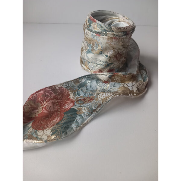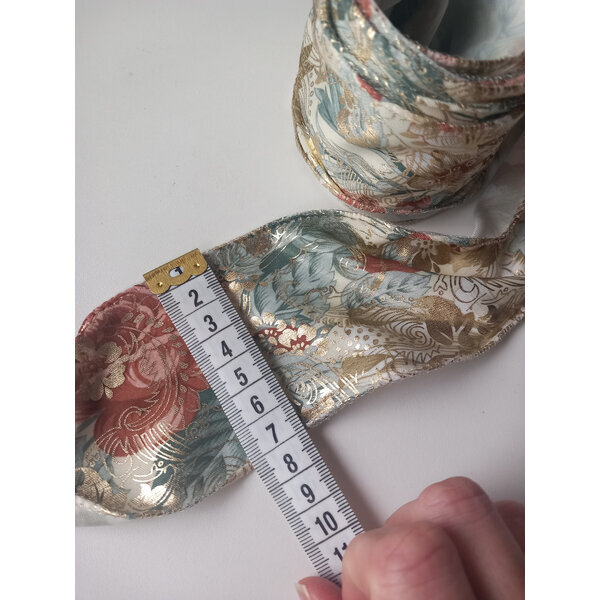 Ich biete das abgebildete Satinband mit dünnem Drahtrand an.