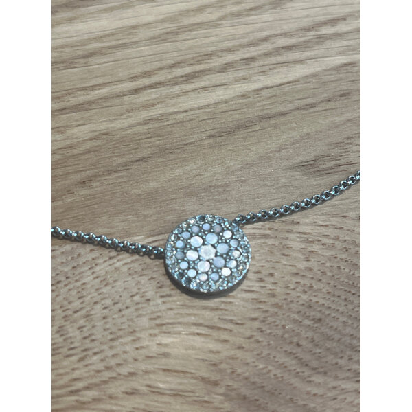 Fossilkette Gesamtlänge ca. 40 cm. Anhänger ca. 1,2 cm. Leider fehlen drei Steine.
