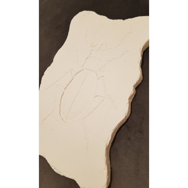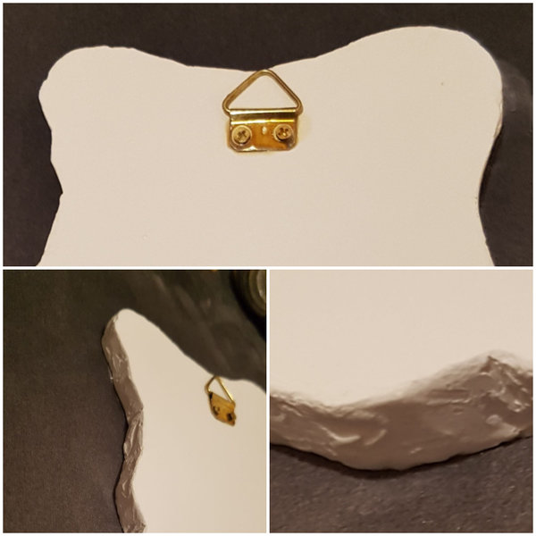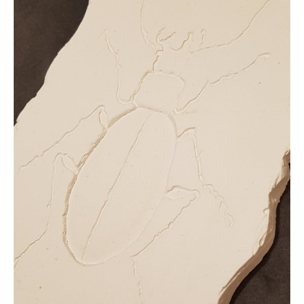 Sehr dekoratives Relief aus Gips mit fossilem Abruck. Zum Aufhängen oder Aufstellen. Herkunft 'Depot'. Hinten Öse zum Aufhängen. Noch zwei weitere in meinem Regal, bei mehrfacher Anforderung mache ich TT- Rabatt.