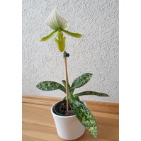 Das erste Foto zeigt die Orchidee während der Blüte, aktuell ist sie ohne Blüte.