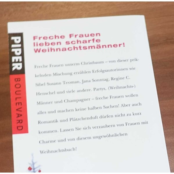 Freche Frauen unterm Christbaum – von dieser prickelnden Mischung erzählen Erfolgsautorinnen wie Gaby Hauptmann, Sibel Susann Teoman, Jana Sonntag und viele andere. Parties, (Weihnachts-)Männer und Champagner – freche Frauen wollen alles und machen keine halben Sachen! Aber auch Romantik und Plätzchenduft dürfen nicht zu kurz kommen. Lassen Sie sich verzaubern von Frauen mit Charme und von diesem ungewöhnlichen Weihnachtsbuch!
