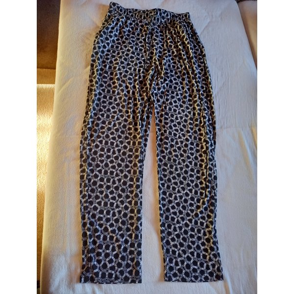 Freizeithose in schwarz mit weißen Kreisen, 2 seitliche Taschen, Kordel am Bund, Gummizug