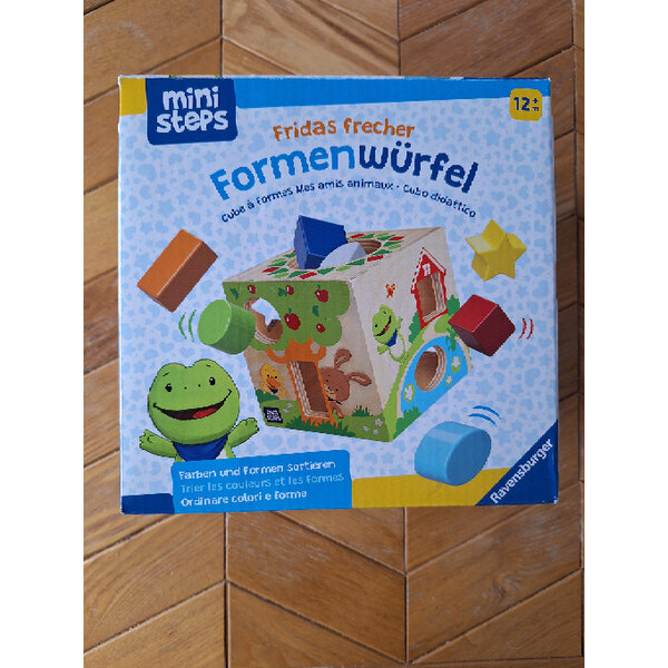 Kreis, Quadrat, Dreieck - jede der 8 bunten Sortierformen passt nur in eine der Öffnungen an den Seiten des Steckwürfels. So trainiert das klassische Lernspielzeug aus hochwertigem Holz gleichzeitig Farben, Formen, Feinmotorik und Hand-Auge-Koordination. Die durchgängige, fantasievoll illustrierte Landschaft hilft, die richtige Stelle zu finden. Wer genau hinsieht, kann Frida Frosch und ihre Freunde bei lustigen Aktivitäten wie Drachensteigen oder Versteck-Spielen entdecken. Die ersten drei Lebensjahre eines Kleinkindes sind unglaublich spannend und voller einzigartiger Momente: das erste Lächeln, das erste Wort, der erste Schritt. Tag für Tag entdecken die Kleinen mit allen Sinnen ihre Umwelt und erlernen neue Fähigkeiten. ministeps unterstützt diese Entwicklung Schritt für Schritt und bietet Eltern die nötige Orientierung, um ihr Kind auf liebevolle Weise zu fördern.