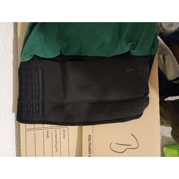Der Binder wurde viel getragen, ist gewaschen. Verschließen lässt er seitlich mit Häckchen. Er ist gut geeignet für C-Größen.