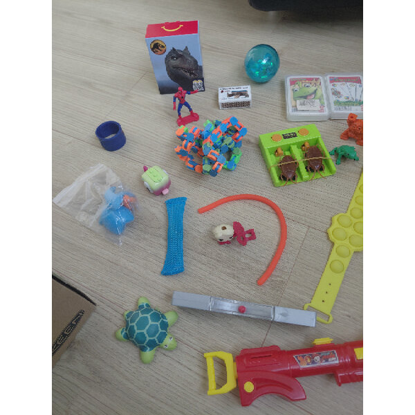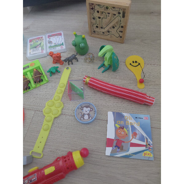 Mehr als 24 Kleinigkeiten, die einem Vorschüler oder Grundschüler große Freude bereiten. Kleine Spiele, Geduldsspiele, Fidgettoys und Spielfiguren. Unter anderem Ice Age, Marvel, Eldrador