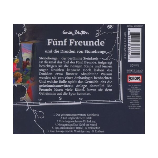 Onkel Quentin ist zu einem wissenschaftlichen Symposium nach Salisbury eingeladen. Und da die Ferien gerade anfangen, fahren die Fünf Freunde mit. Sie mieten sich Fahrräder und fahren damit nach Stonehenge. Viel haben sie schon von dem berühmten Steinkreis und seinen Legenden gehört. Hatte wirklich der legendäre König Artus den Steinkreis errichtet? Oder waren es die Kelten gewesen, ein wildes Volk, das in grauer Vorzeit gelebt hatte? Hatten dort düstere Opfer-Zeremonien stattgefunden? Oder war es eine der ersten Sternwarten der Welt gewesen? Die Kinder erhofften sich ein paar Antworten auf ihre vielen Fragen und stolpern in ein spannendes Abenteuer.