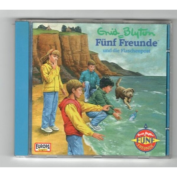 Covertext: "Als auf der Felseninsel eine Flasche an den Strand gespült wird, entdecken die Fünf Freunde darin einen geheimnisvollen Hilferuf. Sofort ist ihre Neugier geweckt: Wer ist der Absender? Wo kam die Nachricht her? Und warum sind zwei Radiomoderatoren ebenfalls im Besitz einer Flaschenpost? Mit detektivischem Eifer verfolgen die Fünf Freunde die Spuren der rätselhaften Nachricht - und erleben ihr blaues Wunder ..."
