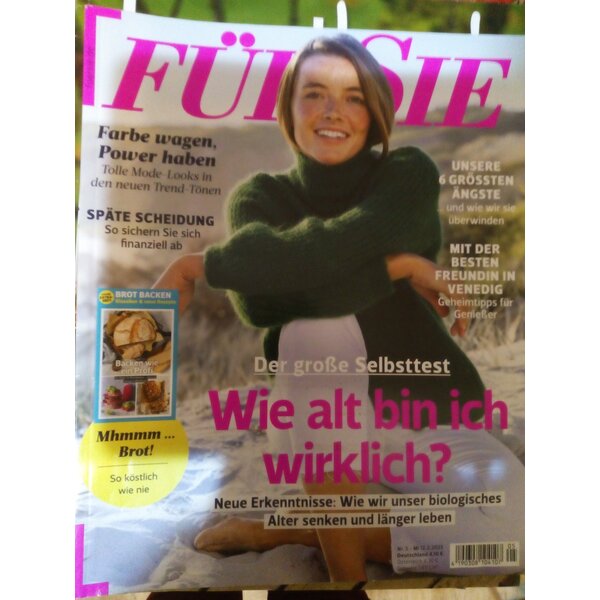 Für Sie Nr. 5 aus 2025 u. a. mit diesen Themen: Der große Selbsttest - Wie alt bin ich wirklich? Neue Erkenntnisse: Wie wir unser biologisches Alter senken und länger leben. Späte Scheidung - so sichern Sie sich finanziell ab. Farbe wagen, Power haben: Tolle Mode-Looks in den neuen Trend-Farben. Unsere 6 größten Ängste - und wie wir sie überwinden und vieles mehr.