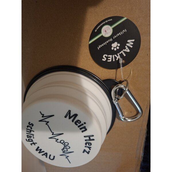 Schöner Wasser- oder Futternapf für unterwegs mit Hundespruch-Aufdruck.