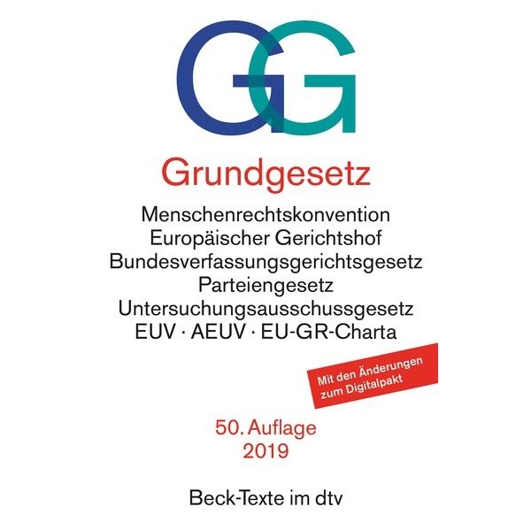 Grundgesetz mit Menschenrechtskonvention, Verfahrensordnung des Europäischen Gerichtshofs für Menschenrechte, Bundesverfassungsgerichtsgesetz, Parteiengesetz, Untersuchungsausschussgesetz, Gesetz über den Petitionsausschuss, Vertrag über die Europäische Union,