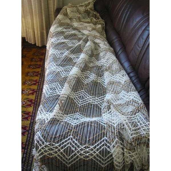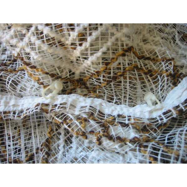 Gardine im Stil der 60er Jahre pflegeleicht Wollweiß und kupferfarbenes Web-Element Einwandfreier Zustand