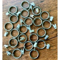20 Stück schwere, robuste 20 Gardinenringe inklusive abnehmbaren Befestigungs-Clips - dunkles Metall - Innendurchmesser 30 mm, Außendurchmesser 38 mm. ... mehr