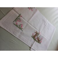 Vintage Tischdecke weiß Leinen dezentes eingewebtes Muster, nicht glänzend ... mehr