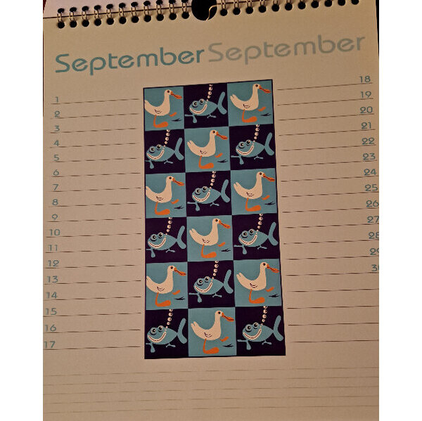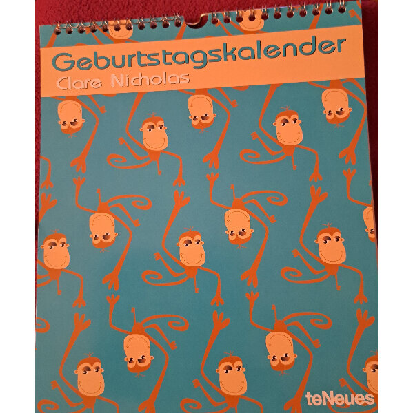 Geburtstagskalender mit fröhlich bunten Bildern, keine Mängel ersichtlich.
