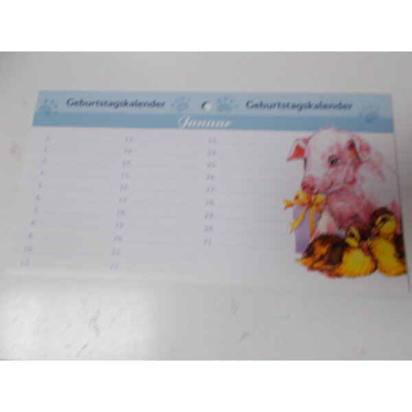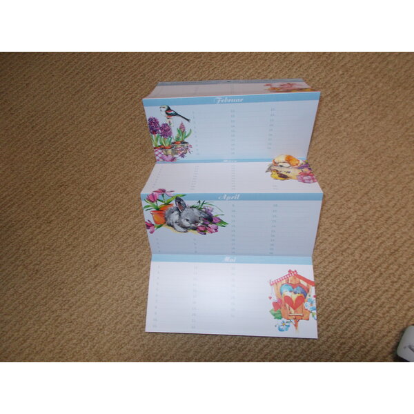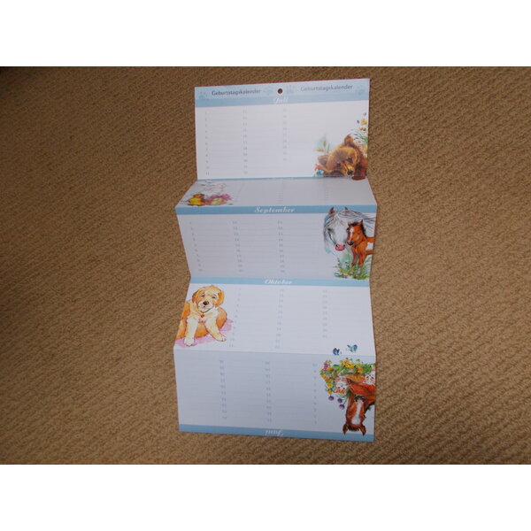 faltbarer Geburtstagskalender. zusammengefaltet 19 x 10,5 cm, aufgeklappt ca. 19 x 62 cm