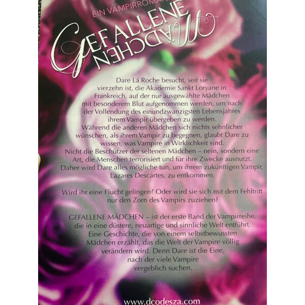 GEFALLENE MÄDCHEN – ist der erste Band der Vampirreihe, die in eine düstere, neuartige und sinnliche Welt entführt. Eine Geschichte, die von einem selbstbewussten Mädchen erzählt, das die Welt der Vampire völlig verändern wird...