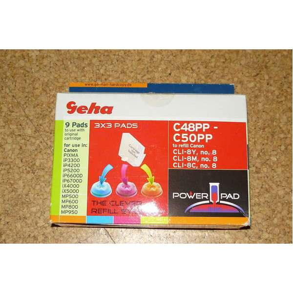 noch original verpackte GEHA Nachfülllsystem für Canon Drucker - 9 Pads je 3 x Cyan, Magenta und Yellow