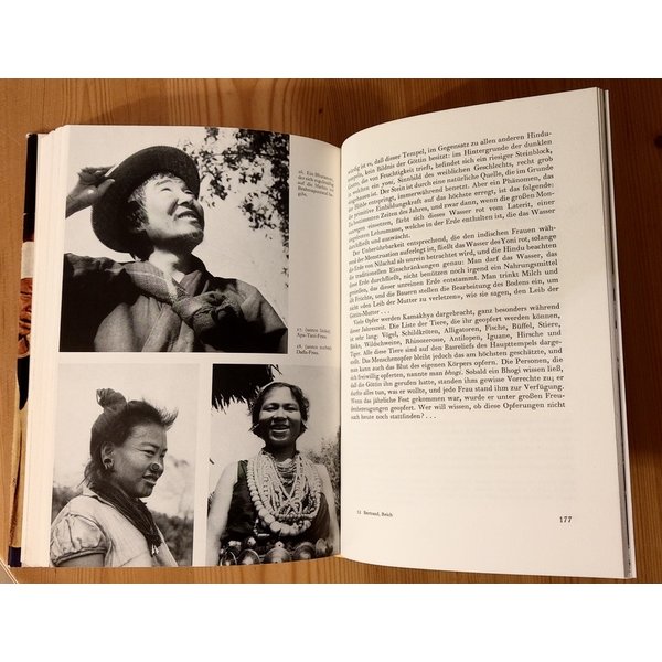 Prolog - Erster Teil: Vom Ganges zum Brahmaputra - Zweiter Teil: Garo Hills / Bei den Kopfjägern Atchik - Dritter Teil: In den Bergen des Schlangengottes - Vierter Teil: Das wilde Nordufer - Fünfter Teil: Tulchidjora Dhura / Jagdlager - Epilog. - Gabrielle Bertrand, französische Forschungsreisende, Journalistin und Schriftstellerin, von 1930 bis 1933 Sekretärin von Albert Einstein. 1953 organisierte sie die zwei Jahre dauernde französisch-indische Expedition nach Assam, von der sie in dem hier vorliegenden Buch berichtet