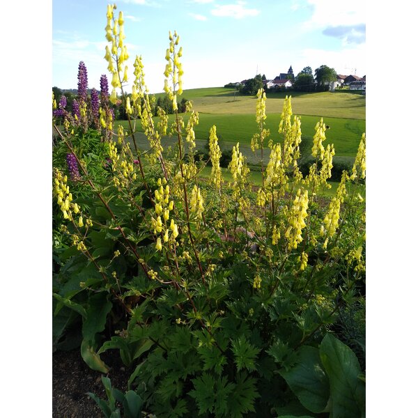 Der Gelbe Eisenhut ist genau so giftig wie sein blauer Bruder, daher Vorsicht bei Kindern im Garten.