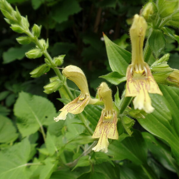 Salvia glutinosa: Heimische Staude, ideal für naturnahe Gärten, verträgt gut Schattenplätze und auch Trockenheit.