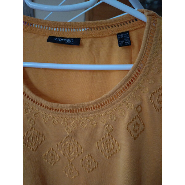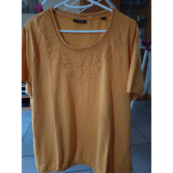 Ein hübsches T-Shirt mit dezenter Stickerei und am am Saumabschluss mit einem Gummi, damit es locker fällt. Bei mir fällt es leider nicht mehr locker, daher tausche ich es weg;)