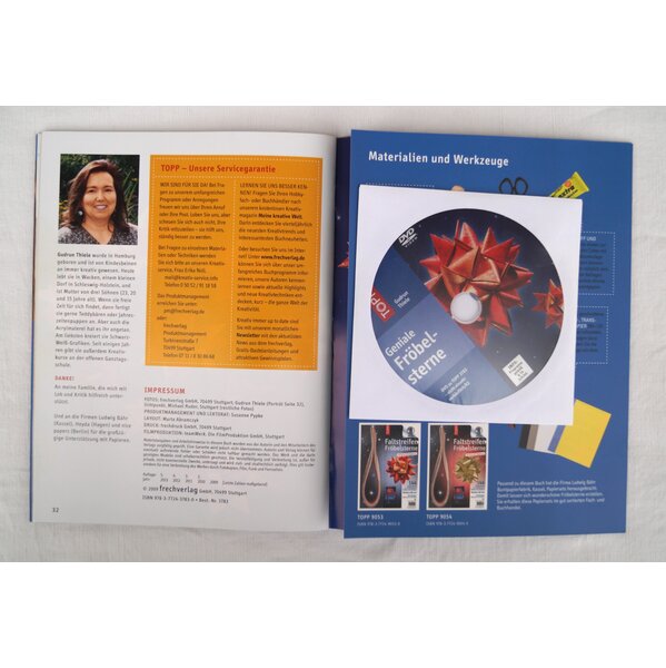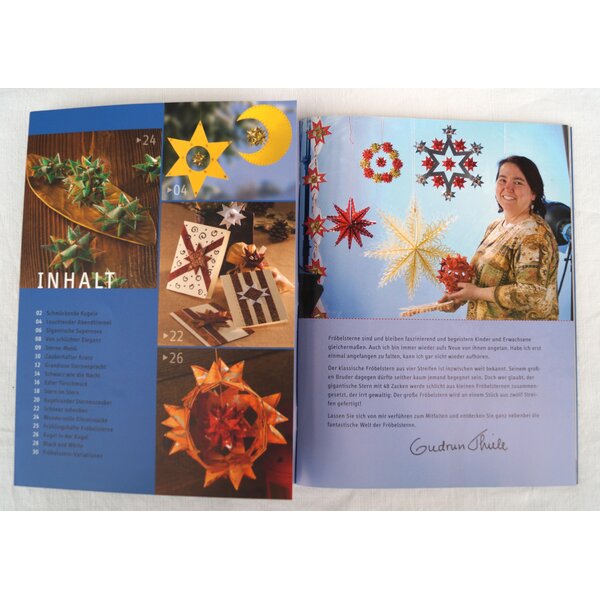 Ein Fröbelstern mit 48 Zacken - das gab es noch in keinem Bastel-buch! Der große Bruder des 16-zackigen Klassikers wird an einem Stück aus zwölf Papierstreifen gefertigt! Ob Sternenkugel, kleiner oder großer Fröbelstern: In diesem Buch finden Sie zahlreiche neue Anregungen, Ideen und Variationen. Mithilfe der ausführlichen Grundanleitung und des Faltkurses auf DVD werden auch Sie im Handumdrehen Erfolgserlebnisse haben. 32 Seiten, 17 x 22 cm, Umschlagklappen, perforierte Vorlagenbogen, Einsteckhüllen, mit DVD