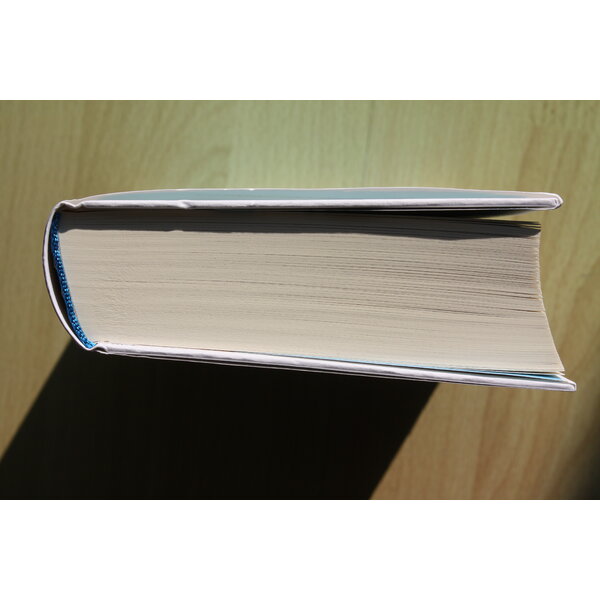 Ein Mal vorsichtig gelesen, Schutzumschlag an manchen Rändern minimal geknautscht, Einband hinten am oberen Rand mit Eindrückung (auf einem der Fotos recht gut zu sehen), Rücken ein bißchen schief, aber ohne Leserillen