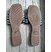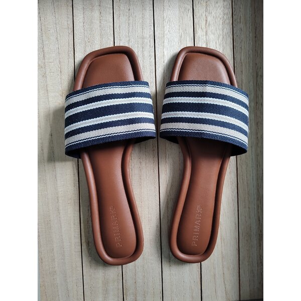 Gesamte untere Sohlenlange 27,7 cm. Fester Stzoff in dkl.-blsu, weiß und beige. Innen gepolstert, Sohle aus Kunststoff.