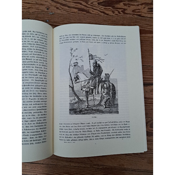 Dieses monumentale Geschichtswerk ist luxuriös mit Holzschnitten von A. Menzel, F. Defregger, W. Diez sowie anderen bekannten Künstlern ausgestattet und behandelt die heidnisch-germanische Zeit bis zur Gründung des deutschen Kaiserreiches.