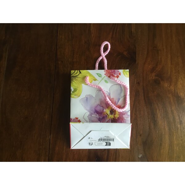 Geschenktasche ca. 12 x 16 x 6 cm,unbenutzt aber eventuell ein paar Lagerspuren da sie nicht verpackt war,sonst völlig in Ordnung,gern als Zugabe