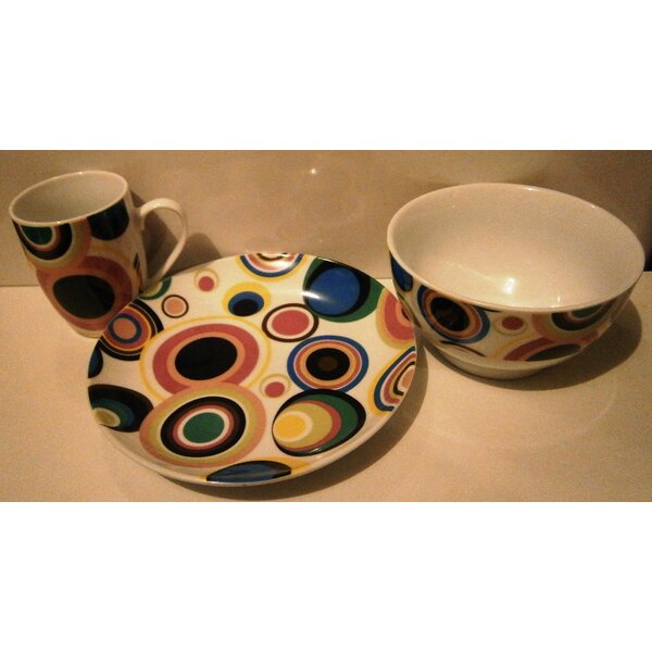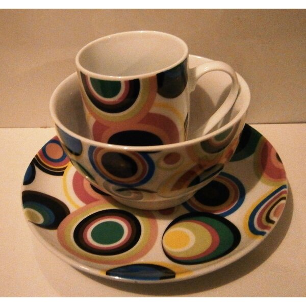 Geschirrset für Frühstück: Brotteller, Müslischale und Henkelbecher. Normalgröße. Poppig bunt, macht Laune. Spülmaschinenfest.