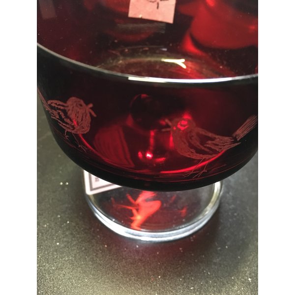 Glas durchgefärbt Gravur Vögel Handarbeit