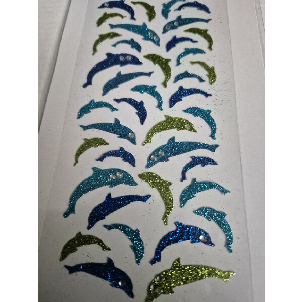 Glittersticker Delphine in verschiedenen Größen. Verschiedene Blau- und Grüntöne, zum Verschönern von z.B. Karten, Geschenke, Tischkarten usw.
