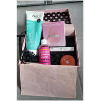 Selbst zusammengestellte Glossybox, alles neu und ungeöffnet. Enthält eine Bodylotion von No Cosmetics, einen Powder Puff, ein PH Lip Oil, ein Duschgel und ein Mineral Blush in der Farbe Desert Rose von Bellapierre